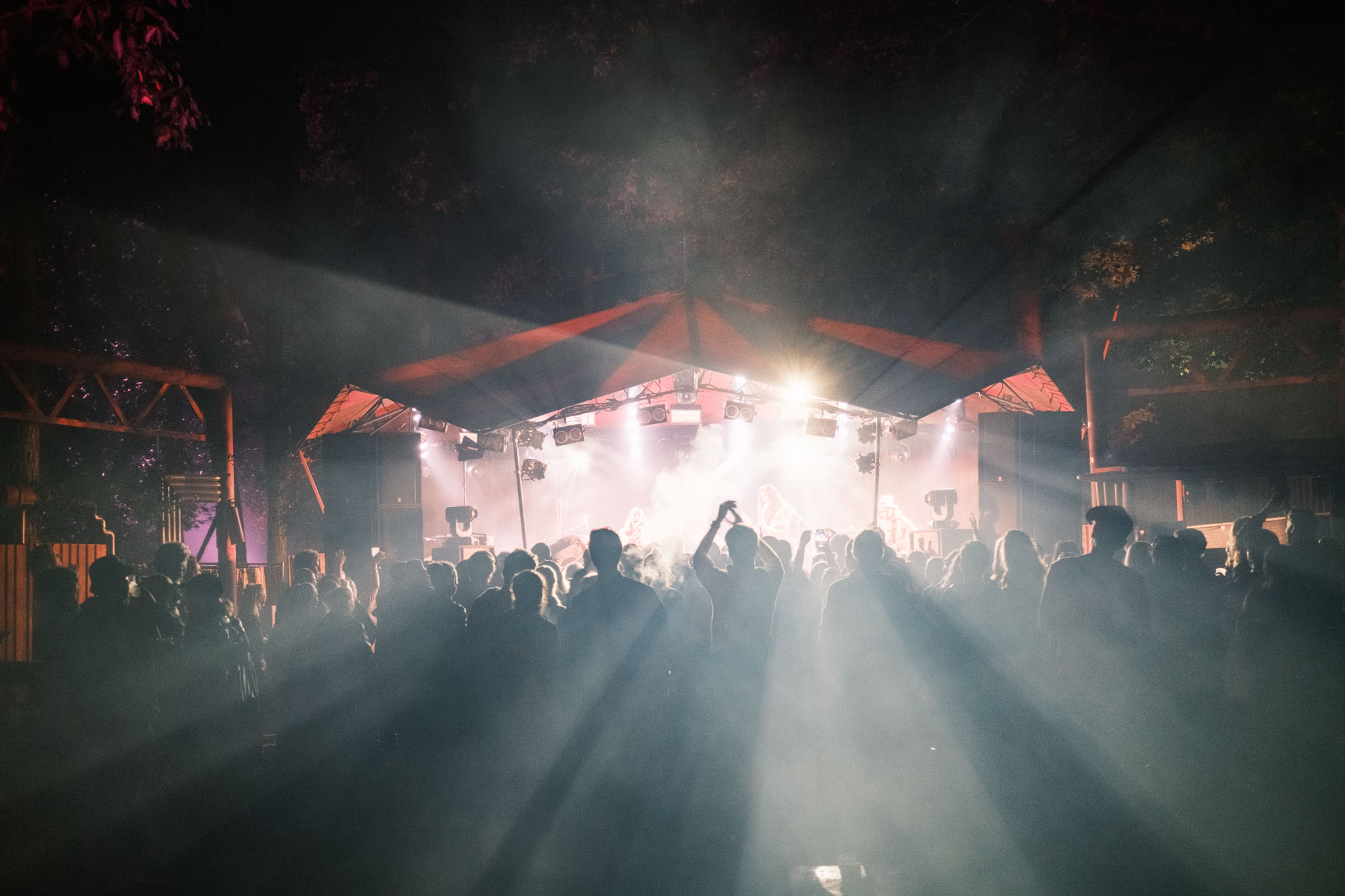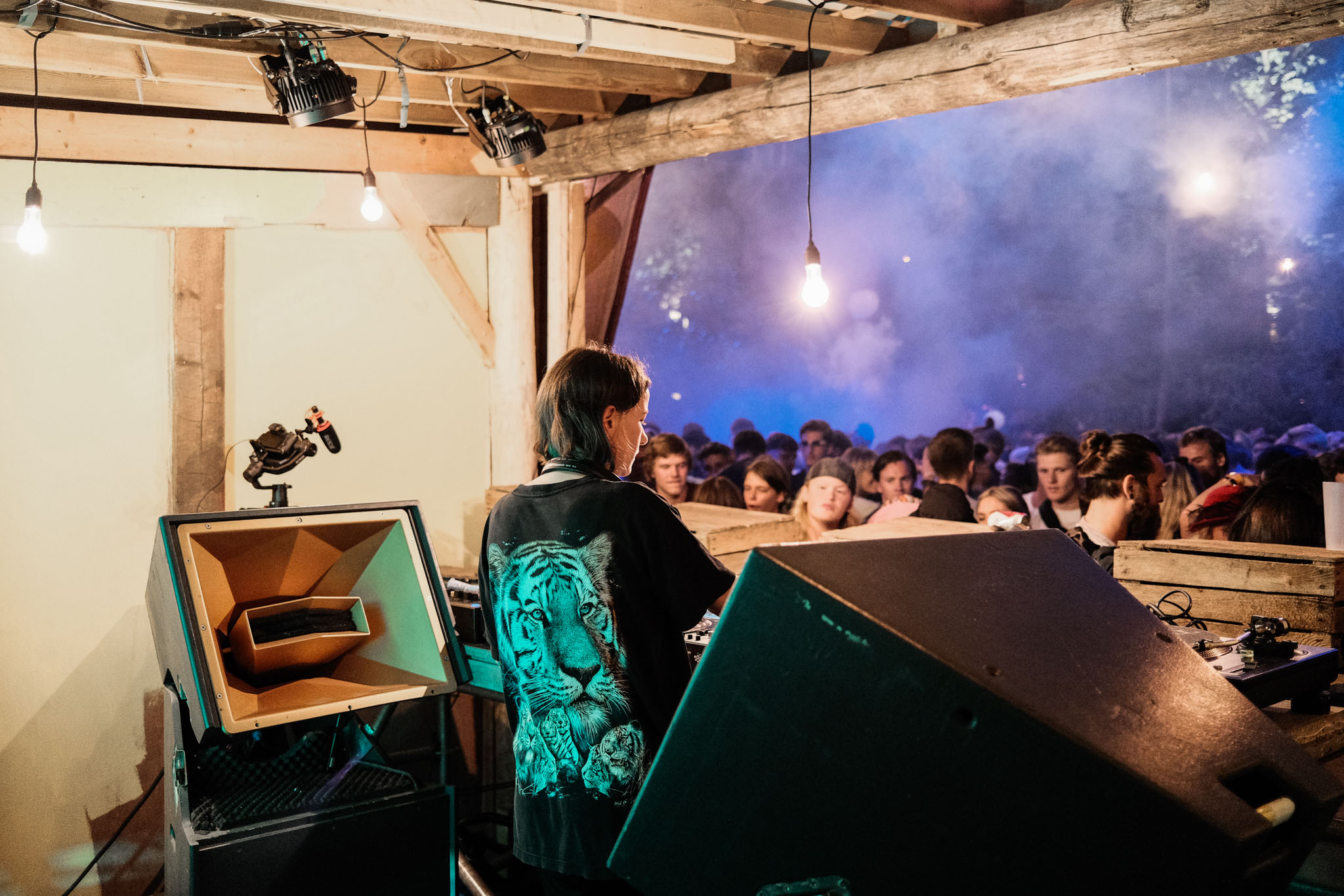 We lopen langs bij de altijd onvoorspelbare Radio de Koperen Hond, waar een snoeiharde hardcoreset alle bosbewoners wakker schudt, bij de nieuwe stage Wildgroei die zijn plek op het festival nog lijkt te moeten vinden en bij de Takkenstage, die niet alleen qua positionering maar ook met zijn decor vol huisraad uit vervlogen tijden een van de absolute blikvangers is op het wedergekeerde Into the Woods. Ook vangen we vibes bij audt98, een Amersfoortse belofte die net zijn eerste EP vol hypnotiserende electro uitgebracht heeft.