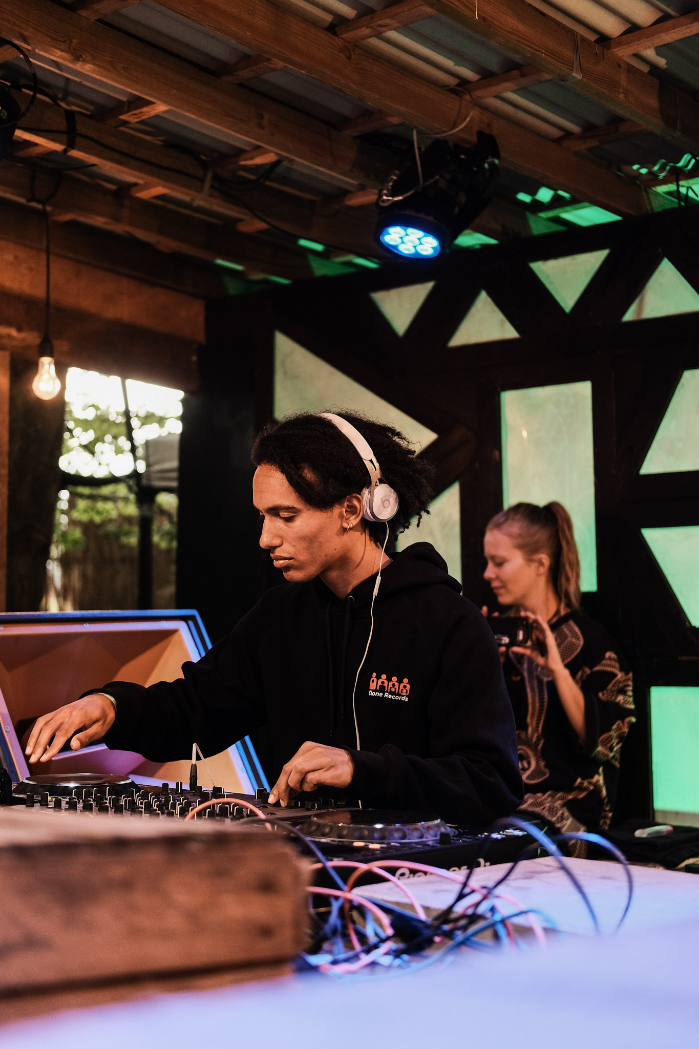 Het duo achter de decks voelt haarfijn aan hoe je dag twee van Into the Woods opent. Vakmannen zijn het, puristen ook. Direct na de laatste plaat ontwijken we behendig een boomstronk om snel backstage te geraken. Een gesprek met Han van de Grift, de ene helft van Mahabe, staat op onze wensenlijst voor de finale van onze serie.